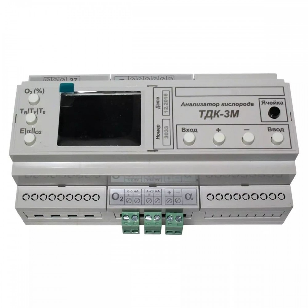 Серийно изготавливаемый анализатор кислорода ТДК-3М рекомендован к использованию для беспрерывного анализа в дымовых отходящих газах содержания кислорода в диапазонах от 1 до 21 % объёмной доли. Конструкция кислородомера состоит из погружного кислородного зонда, вторичного преобразователя, блока питания, микрокомпрессора. На лицевой панели блока управления и индикации имеется цифровой дисплей и кнопки управления. Длина измерительного зонда может составлять от 270 мм до 2000 мм. Максимальная длина кабельной линии от зонда к вторичному преобразователю не должна превышать 250 метров.