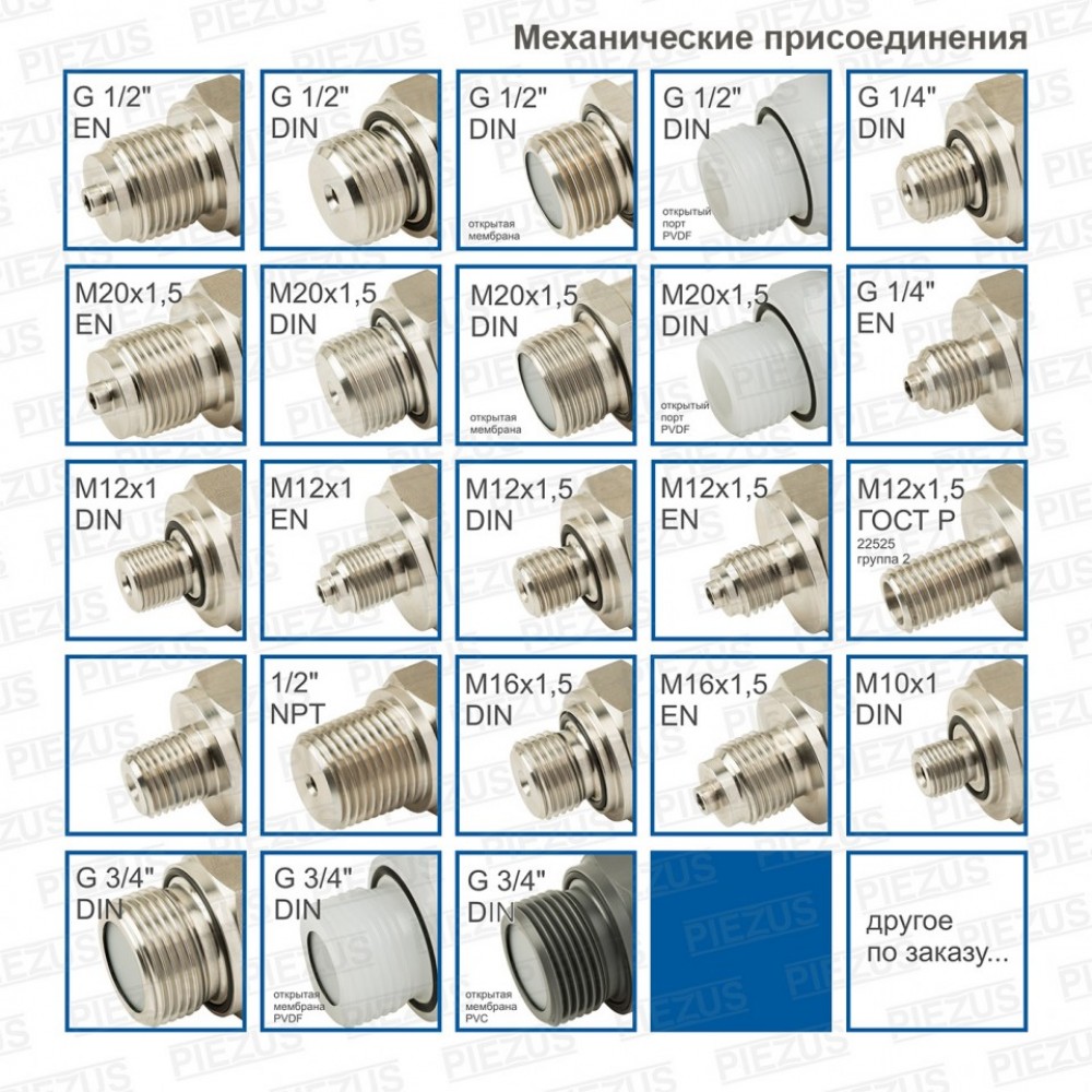 Механическое присоединение: G1/2”; G1/4”; 1/2” NPT; 1/4” NPT; М20х1,5 и другие.