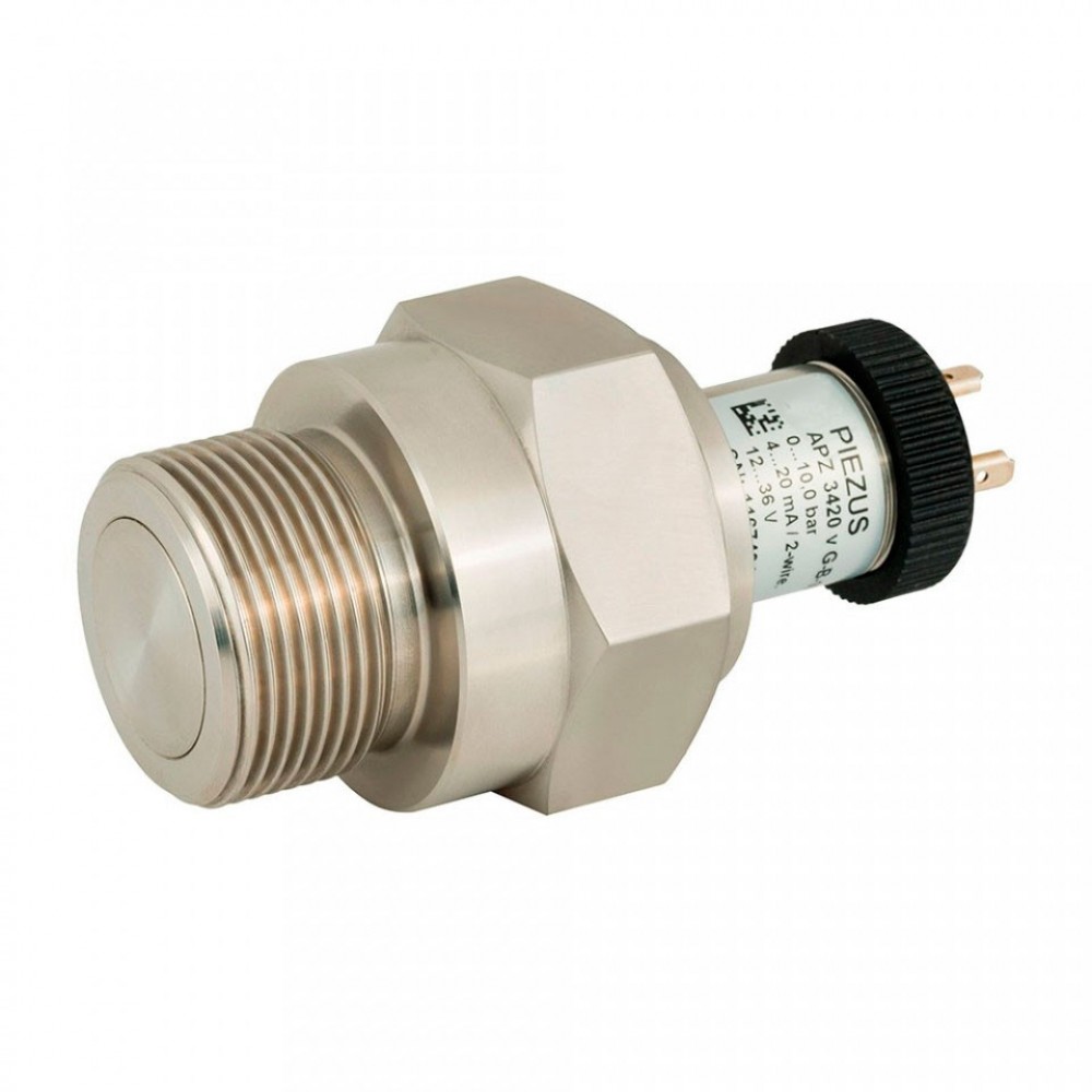 Датчик давления APZ 3420 v с поршневым разделителем в резьбовом исполнении применяется для непрерывных измерений давления бурового раствора, шлама, ила и иных сред с песком, грунтом, каменной крошкой и другими твердыми включениями. Особо прочная толстая поршневая мембрана устойчива к ударам и допускает механическую очистку.