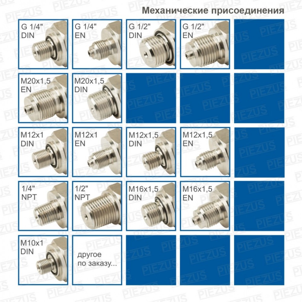 Механическое присоединение: G1/2”; G1/4”; 1/2” NPT; 1/4” NPT; М20х1,5 и другие.