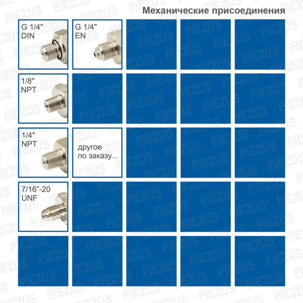 Мехническое присоединение: G1/4”; 1/4ˮ NPT;1/8ˮ NPT;7/16ˮ-20 UNF