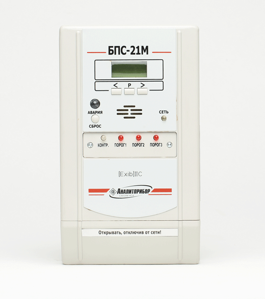 - представление текущей информации о об измеренной концентрации О2 датчиком-газоанализатором ДАМ на цифровом табло блока питания и сигнализации БПС-21М, а также передача ее в виде унифицированного токового сигнала 4-20мА и по цифровому интерфейсу RS-485 на внешние устройства.