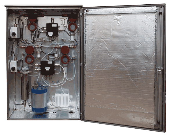 КГО состоит из навесного шкафа газоаналитического (ШГА) с пробоотборным устройством и обогреваемой линией транспортирования пробы (ОЛТП) и шкафа вторичных приборов (ШВП), который размещается в обогреваемом помещении, например операторной или щитовой.