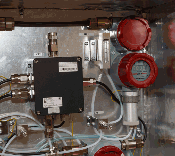 Для увеличения срока службы электрохимических ячеек газоанализаторов ДАХ-М и поддержания оптимального режима работы предусмотрена их продувка атмосферным воздухом. Продувка реализуется при переключении клапана распределительного Burkert. В ШВП установлен контроллер, производящий расчёт концентрации суммы оксидов азота NOx и управляющий работой продувочного клапана.
