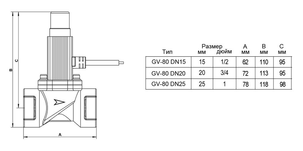GV-80 - стандартный нормально открытый электромагнитный клапан, срабатывающий от импульсного сигнала, перекрывающий подачу газа, предназначен для совместного использования с сигнализаторами загазованности.