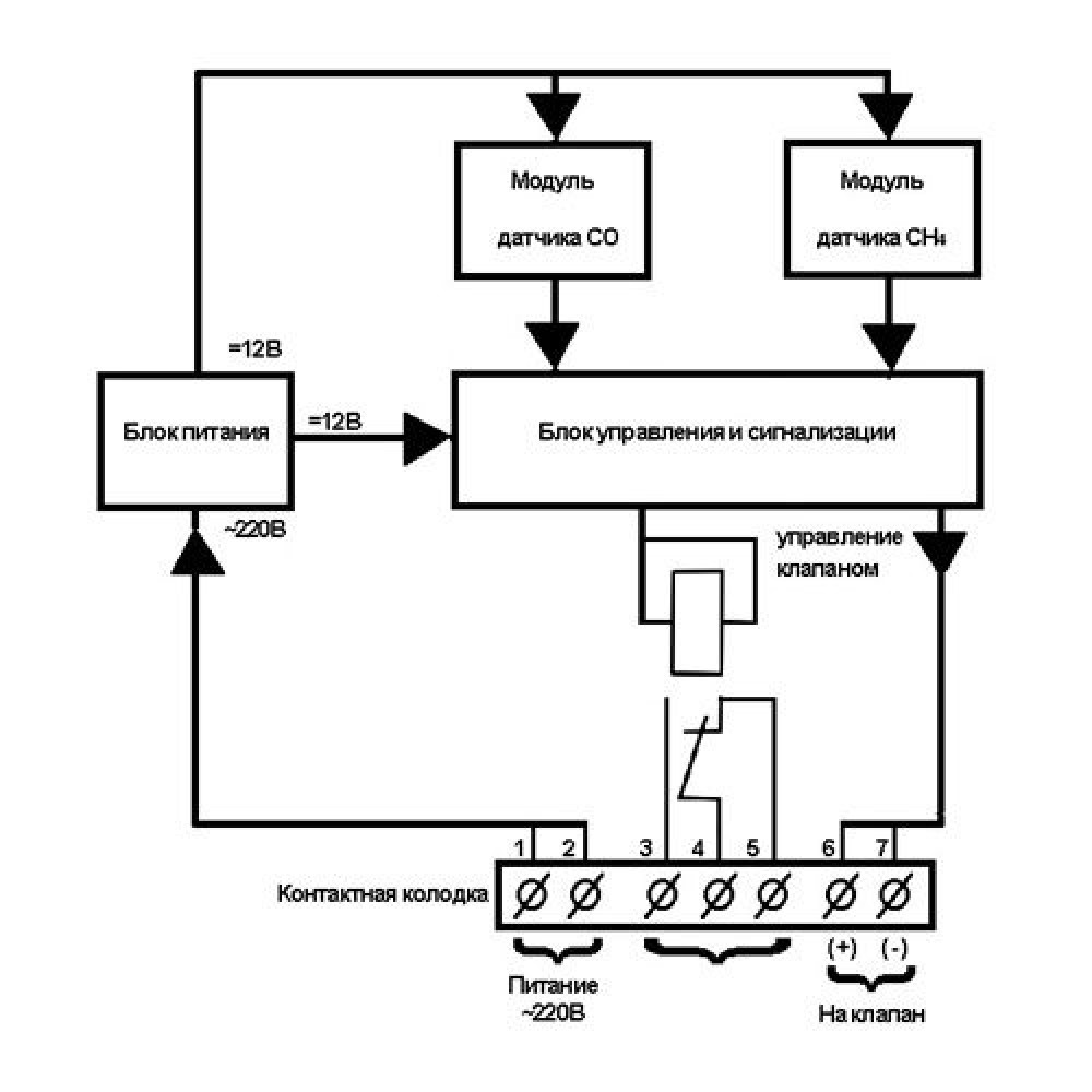 Предназначен для автоматического непрерывного контроля объемной доли оксида углерода (угарный газ) и метана (природный газ), и выдачи световой и звуковой сигнализации о превышении установленных пороговых значений, подачи сигнала закрытия клапана отсечки газа, управления внешними устройствами.